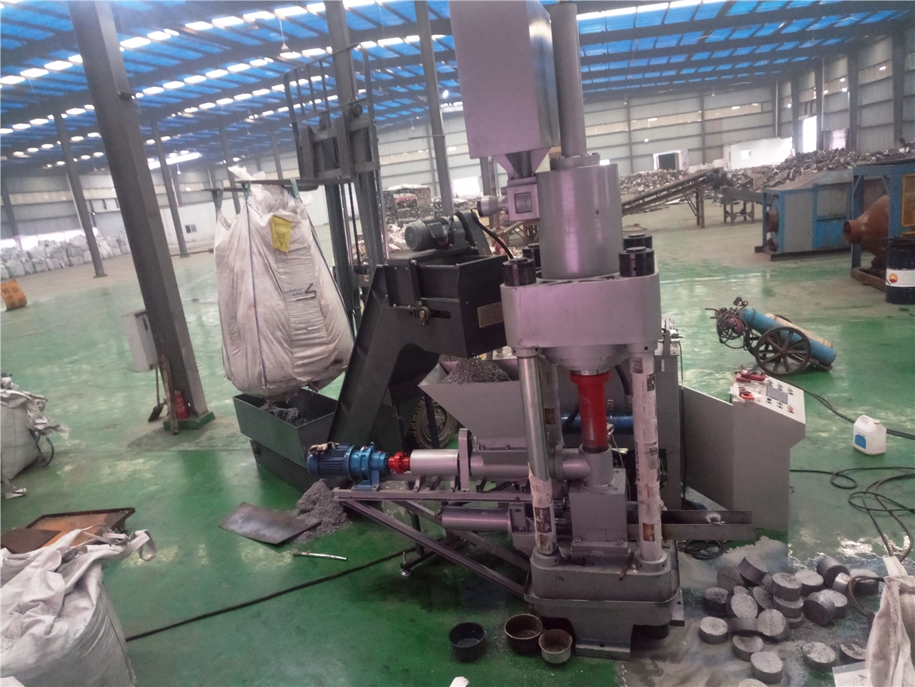“鑫源”牌铝屑压块机主要是用于将铝锯屑、铝车屑原料通过高压直接冷压成1~4公斤的圆柱饼块,整个过程不需加温、添加剂,或其他工艺,以便于储运及减少回收再利用过程中的损耗。适用于铝合金型材厂、铸铝厂、汽配、五金等相关企业。