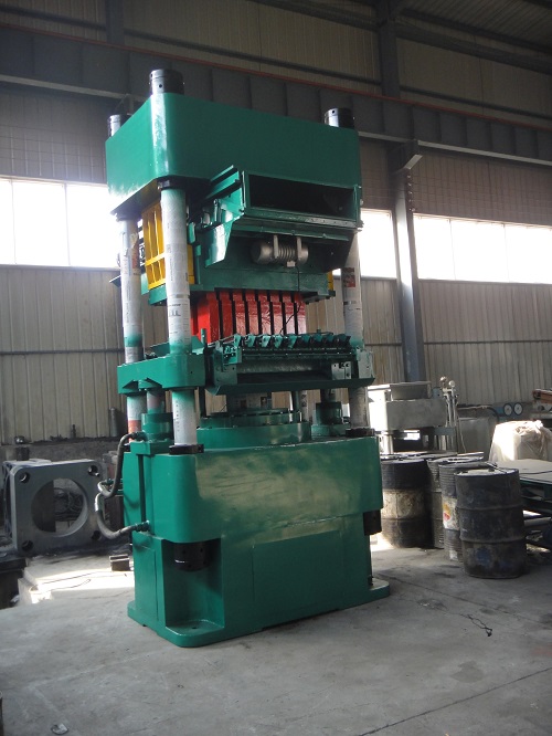 液压压砖机上下横梁由立柱和螺母联接机座组成一个刚性的机架,主液压缸的前端用法兰连接在下梁的中部,工作台中板固定在活塞杆顶端,依靠滑套在立柱上滑动。上模具通过支脚,被固定在上梁中部。模板固定在上模内,是成形制砖的主要部分。