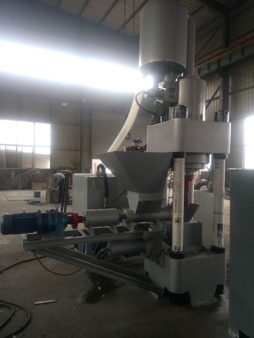 全能型多功能液压成型压块机【压饼机】在金属屑系列实现如下——该产品可对各种不同的钢粒子、海绵铁(还原铁)、铁屑、锡屑、钢屑、铜屑、粉粒状铁粉、冶炼添加剂,压块机冷压制成高密度重量达12公斤以上圆柱体饼块,压制饼块可直接投炉使用,密度可达5.5吨/立方米左右。