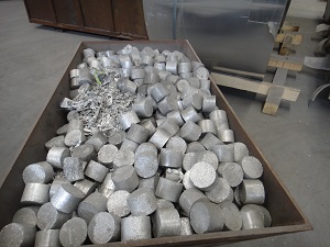 鑫源液压铝屑压块机,压块流程短,压块后密度可达1.9-2.2吨/立方米,强大的压力使切削液分离(可达到98%以上),然后将铝屑块在炉中利用余热或底温进行烘干处理,约0.5-2个小时后可直接投炉,很 大的缩短中间环节,同时使氧化损耗降至低。整个流程无需增加大量辅助设施,在场地使用上无局限性,单套设备仅需16平方米,添加自动输送器后可实现单人操作多台同时运行。铝屑在粉碎、烘干后成型效果也非常好。