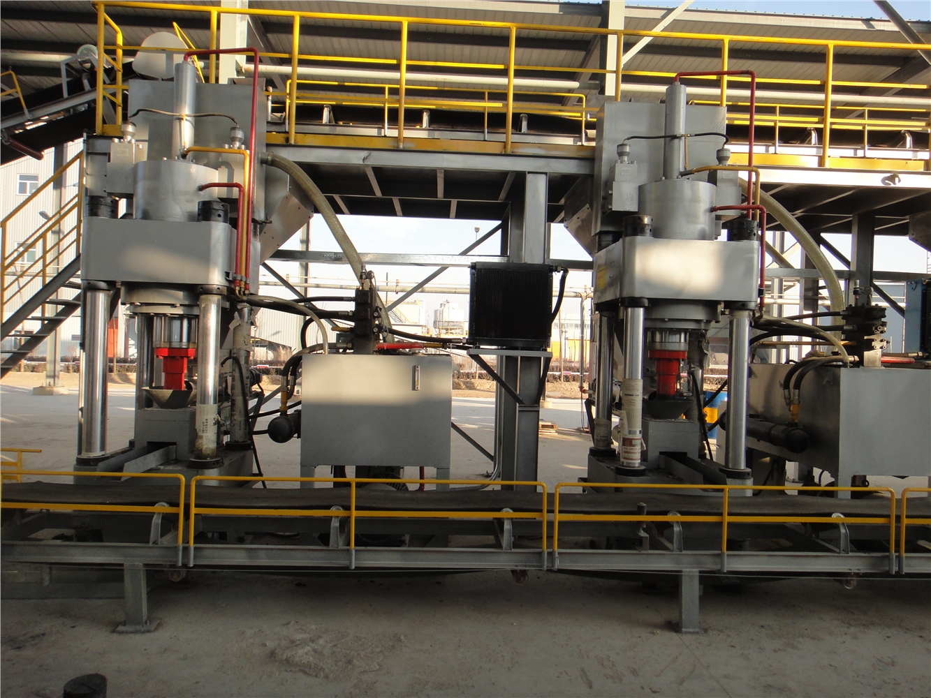 有一抽板缸位于主机下模具后面。抽板缸前位时与模套形成模腔底部,后位时底部形成空间,利于饼块落下,同时具有推饼出模具底部的功能。