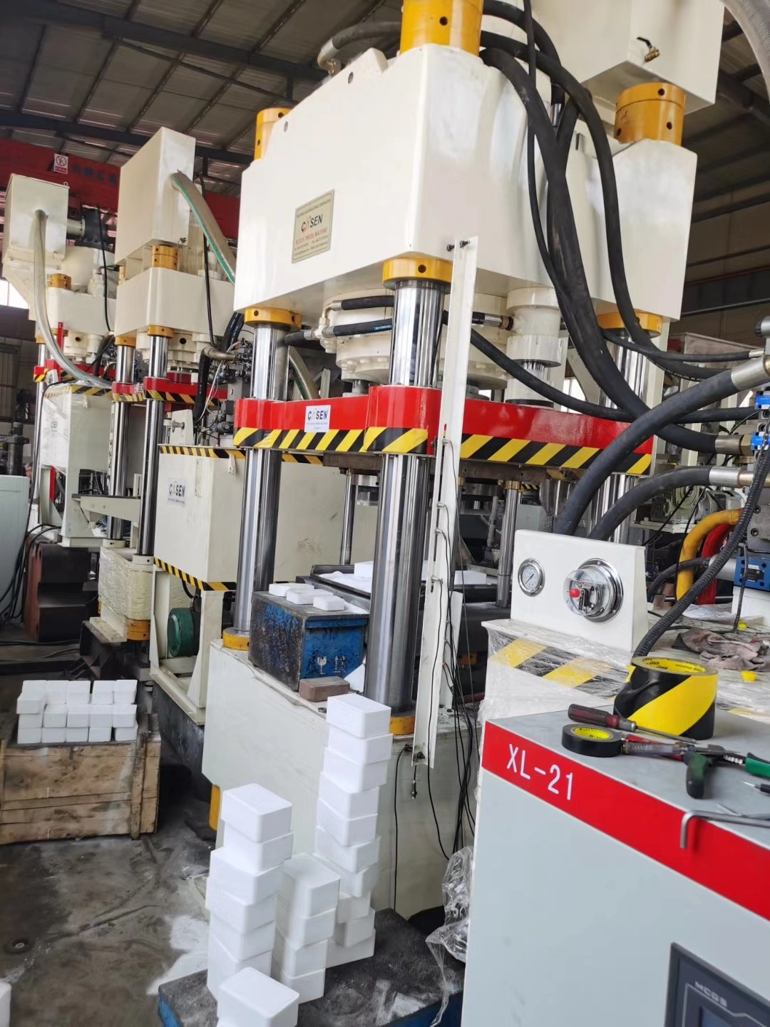 鑫源液压是国内早期生产舔盐砖压块机的典范,开启了该设备国产化的新篇章,四梁四柱的设备结构一致被沿用,15S的成型周期使液压系统的优势得以体现,全自动电脑控制使产品更加标准化。初期开发这个产品时,问的人比较少,但随着畜牧盐在行业内得到大力推广,舔盐砖机一度成为网络热词,每天都有客户来访,订单量超过其他产品,很多厂家看到这个商机后,纷纷效仿,但因技术实力和经验水平的局限,导致市场上出现了一些劣质设备,但鑫源液压机械压块设备的市场占有率却有增无减。