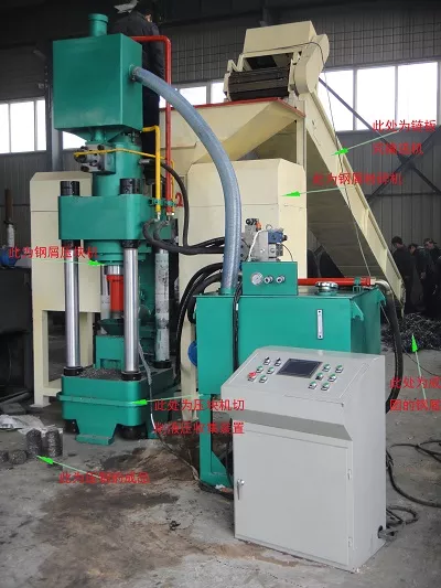 钢屑压块机的机架采用整体铸钢件,消除了钢板的开裂,提高了设备的可靠性,稳定性和使用寿命,采用先进的液压传动技术,叠加组合式阀块和耐磨油封,油缸采用国内高科技术加工组装,保证连续运行,不削弱油缸压力,经久耐用,运行稳定,采用PLC电脑控制系统,自动化程度高,故障率低,容易维护,根据用户情况,增设螺旋自动给料机和链式自动卸料器,减轻了工人的劳动强度。